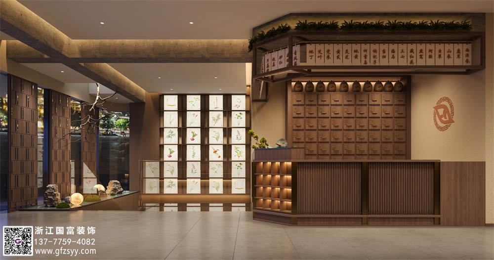 東營(yíng)中醫(yī)館設(shè)計(jì)公司首選浙江國(guó)富裝飾,設(shè)計(jì)乙級(jí)資質(zhì),施工貳級(jí)資質(zhì),承接全國(guó)項(xiàng)目,咨詢電話13777594082微信同號(hào),更多案例請(qǐng)點(diǎn)擊查看:中醫(yī)館設(shè)計(jì)。。中醫(yī)館作為傳統(tǒng)醫(yī)學(xué)文化的重要載體,其設(shè)計(jì)理念不僅關(guān)乎空間功能的實(shí)現(xiàn),更承載著中醫(yī)藥文化的傳承與創(chuàng)新。在當(dāng)代社會(huì),中醫(yī)館的設(shè)計(jì)需要兼顧傳統(tǒng)美學(xué)與現(xiàn)代實(shí)用性的平衡,既要體現(xiàn)中醫(yī)“天人合一”的核心思想,又要滿足現(xiàn)代醫(yī)療服務(wù)的需求。以下從空間布局、文化元素、功能分區(qū)、材質(zhì)選擇及環(huán)境營(yíng)造五個(gè)維度,探討如何打造兼具文化底蘊(yùn)與實(shí)用價(jià)值的中醫(yī)館空間。